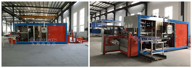 2. ACF系列大高速吸塑机。是市场上使用吸塑机型号,在自动化程度、产量、人工使用量、机器价格亲民,较为容易接受的吸塑机设备。工艺步骤:卷材自动拉料、加热、真空吸塑、整版裁切、裁断机分切。