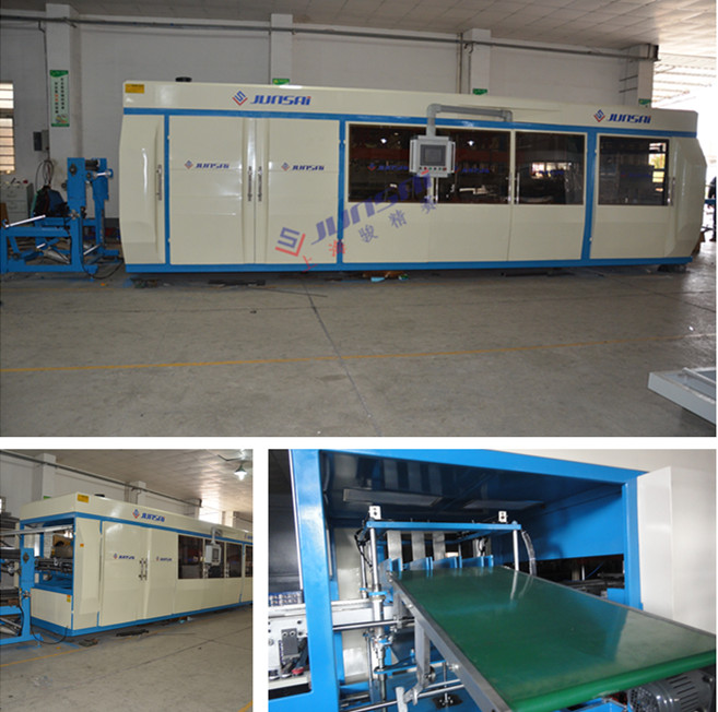 骏赛产品部新推出正负压成型冲切一体吸塑机,该设备为吸塑加工行业节约人力成本、提供品质及提高产能奠定了先决条件。吸塑裁切一体机操作方便、结构稳固、占地面积小、通用性强,从自动上料卷到自动执行正负压吸塑到自动冲切到人工收取成品,一个人可完成,正负压吸塑机的运作方式在常规吸塑机基础上在快很多,效率提升较多,使加工制品单件成本下降较多,保障了用户的竞争力,设备可根据客户需求定制。