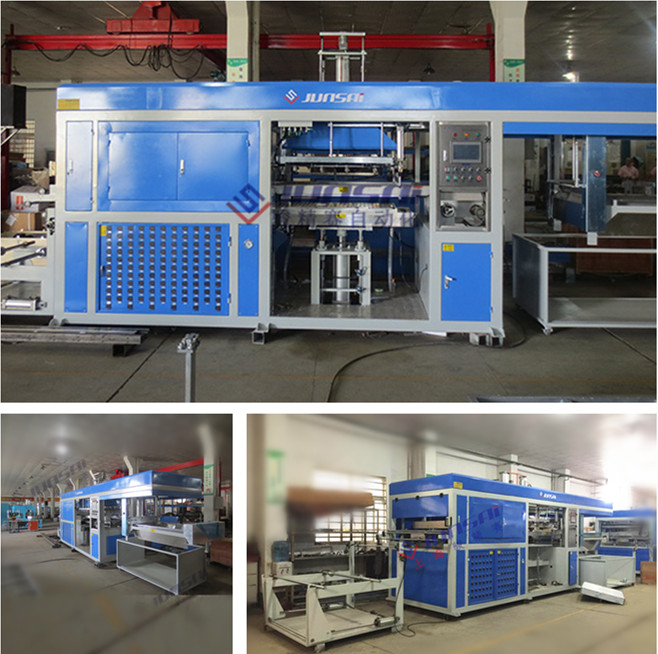 食品包装托盘吸塑机 特点: 设备操作方便、结构稳固、占地面积小、通用性强,从自动上料卷到自动执行正负压吸塑到自动冲切到人工收取成品,一个人可完成,其正负压的吸塑方式在常规吸塑机基础品质提高一个档次,效率提升30%左右,使加工制品单件成本下降20%左右,保障了用户的竞争力。
